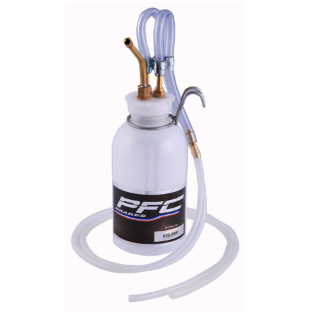 Calipers with twin bleed nipples can be bled individually or simultaneously as each bottle is equipped with twin bleed hoses and one-way valves to prevent air being drawn back in to the caliper during bleeding. Each hose has a clear section of hose, so that any air bubbles can be monitored during the bleeding operation. This hose is then attached to a small bore silicone hose to connect to PFC size bleed nipples but this will also fit standard size nipples as well.